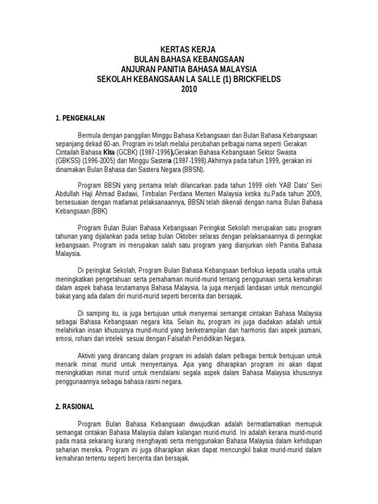 Kertas Kerja Bulan Bahasa Kebangsaan Pdf